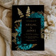 Elegant Moody Dark Floral Türkise Gold Wedding Einladung