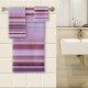 Une belle serviette de bain rayée dans une variété de couleurs mauves violet avec de minuscules lignes d'or rose.