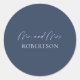Feiern Sie stilvoll Liebe mit diesem eleganten "Mr. & Mrs."-Aufkleber mit einem marineblau-blauen Hintergrund und einer knusprigen weißen Typografie. Das minimalistische und moderne Design eignet sich ideal zum Versiegeln von Gastgeschenk Hochzeiten, Geschenktüten oder zum Hinzufügen von edlen Details zu Ihrem Veranstaltungsort. Eine einfache und dennoch sinnvolle Touch für Hochzeiten, Brautpartys, Jubiläen oder romantische Feste.