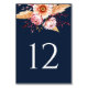 Elegant Navy Blue Boho Floral Wedding Tischnummer