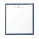 Create your own personalized notepad with monogram initials in elegant typography alongside custom name and simple border design in navy blue color.