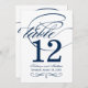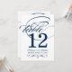 HINWEIS: Jede Tischnummer muss individuell angepasst und in den Warenkorb aufgenommen werden. Elegante Karten beinhalten ein geblüht Monogramm mit marineblauer Kalligraphie und Akzenten im Scrolldesign. Zwei Seiten-Design.