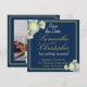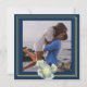 Elegant Navy Blue Foto Gold Script White Rose Save The Date