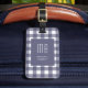Elegant Navy Blue Gingham Monogram Luggage Tag.