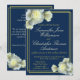 Elegant Navy Blue Gold Script White Rose Hochzeit Einladung