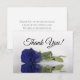 These simple cards are a wonderful way to thank your wedding guests for being a part of your special day. The front features a single navy blue colored rose lying on its side mirrored in a pool of water with elegant script lettering reading "thank you". The back has space for a short note and signature. Beautiful ending to a new beginning.