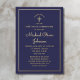 Elegant Navy Blue Script First Communion Gold Folieneinladung