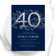 Elegant Navy Blue Silver 40. Geburtstag Einladung