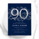Elegant Navy Blue Silver 90. Geburtstag Einladung