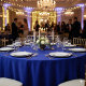 This elegant navy blue tablecloth brings a touch of sophistication to any dining setting. Crafted from high-quality fabric, it drapes beautifully over tables, enhancing both casual meals and formal gatherings. Its rich deep hue adds timeless style while protecting your table, making it a practical and fashionable choice for every home.