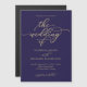 Elegante Gold Calligraphy Navy Blue Wedding Magnetic Einladung
