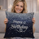 Elegant Navy Glitter Happy Birthday Throw Pillow Kissen
