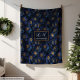 Elegant Navy Gold Blanket Custom Name Floral Art Fleecedecke