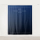 This elegant wedding backdrop features a deep navy blue gradient background, creating a sophisticated and timeless atmosphere. The design includes a clean white rectangular border framing the initials "M" and "K," followed by customizable names in a classic serif font, perfect for personalization. The overall layout is minimalist, emphasizing clarity and refinement with ample negative space. Ideal for formal events, this backdrop conveys an understated luxury that enhances any celebration.