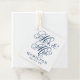 Diese marineblau-weiße Gastgeschenk Hochzeit-Tags tragen den Titel "Mr. and Mrs." in elegantem Drehbuch mit einem individuellen Monogramm Braut- und Bräutigams verheiratetem Familiennamen und Hochzeitsdatum auf der Vorderseite und einem farbigen Foto auf der Rückseite - perfekt, um ein Lieblings-Verlobung-Foto des Ehepaares anzuzeigen.
