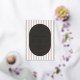 This elegant wedding invitation features a classic rectangular layout with vertical stripes in alternating white and light gray, creating a sophisticated backdrop. The focal point is an oval shape filled with dark navy color, where the text is arranged hierarchically using a mix of serif and sans-serif fonts for contrast and readability. The design exudes formality and tradition, perfect for celebrating a special occasion with a refined touch. Customizable elements allow personalization while maintaining a timeless aesthetic ideal for any formal event.