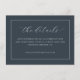This elegant wedding enclosure card features a minimalist design with a deep navy blue background and crisp white text, creating a sophisticated and timeless look. The layout is centered, with an eye-catching cursive script for the phrase "the details" at the top, followed by clear instructions in a clean sans-serif font. The generous spacing between lines enhances readability, while the absence of decorative elements keeps the focus on the essential information. Perfect for directing guests to your wedding website, this card exudes professionalism and understated elegance, making it ideal for formal occasions.