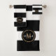 Décorez votre salle de bain en ajoutant une touche de classe avec ce somptueux ensemble de serviettes de bain Monogram Gold Stripes Noir Blanc. Ce design moderne a de larges bandes horizontales noires sur la bordure blanche arrière - plan et noire du centre. Votre initiale est en faux or simple lettrage et personnalisée avec le nom de famille en blanc tendance écriture lettrée à la main. Vous pouvez remplacer le nom de famille par le prénom si vous le souhaitez. Cliquez sur l'option Personnaliser le modèle et suivez les invites.