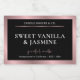 Améliorez votre conception d'emballage de produit avec ces luxueux rectangle en or noir et rose 3x2" étiquettes - parfait pour les bocaux à bougies, les colliers de cire, les boîtes ou les poches. Doté d'une bordure métallique à effet or rose et d'un arrière - plan noir avec un type serif moderne et de l'espace pour votre marque. Éditez dans l'éditeur de design et dévoilez quelques options de texte de script en or bronze, dont 'bougie parfumée', 'bougie de cire de soja', 'bougie de luxe' et 'fait à la main' que vous pouvez choisir.