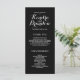 Programmes De Mariage Élégants. Texte blanc sur arrière - plan noir. Design par Elke Clarke © Disponible à l'adresse www.zazzle.com/monogramgallery. Customisez avec votre couleur arrière - plan et toutes vos informations personnelles pour créer un programme simple et sophistiqué que vos huissiers peuvent distribuer lorsque vos invités entrent dans l'église ou sont assis là où la cérémonie aura lieu. Il aide les gens à suivre la cérémonie mais agit aussi comme un gardien pour vos invités. Vous pouvez utiliser les champs modèles pour remplir les informations suggérées sur votre mariage et l'ordre de service et vous remercier de message ou sélectionner "customisez-le" et utiliser le menu modifier pour modifier l'espacement du texte, les polices, les couleurs que vous souhaitez créer vos propres programmes de mariage.
