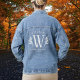 Célébrez les réunions familiales et/ou familiales avec cette veste en denim, qui présente des lettres élégantes blanches et noires aux accents floraux spartiates. Personnalisez avec le nom de famille, l'initiale (ou l'armoirie de la famille), le nom de l'événement et la date de l'événement. Design © W.H. Sim. Voir plus sur zazzle.com/expressionsoccasions