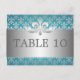 Design élégant "Table Number" de mariage avec design romantique Fleur De Lis Blue et texte de numéro de table personnalisé. Impressionnez votre famille et vos amis avec ce design élégant et moderne. Entièrement personnalisable ! Facile à utiliser et facile à personnaliser. Commandez aujourd'hui !