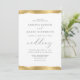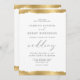 Cette élégante invitation de mariage présente un dessin de bord déchiré de faux feuille d'or aux bords supérieur et inférieur. Le mot "mariage" apparaît dans le script calligraphique. Customisez le texte gris charbon de bois avec les noms de la mariée et du marié et les détails du mariage. Le dessin de bord doré est répété à l'envers.