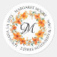 Elegant Orange Floral Script Monogram Address Runder Aufkleber