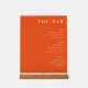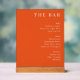 This elegant wedding menu card features a clean, minimalist design with a warm orange background and crisp white serif typography. The layout is organized into three sections—Beer, Wine, and Spirits—each clearly labeled for easy reading. Its sophisticated style conveys a professional and inviting atmosphere, perfect for setting the tone at your special event. The balanced composition and effective use of negative space enhance clarity, making it an ideal choice for couples looking to present their beverage options in a stylish and straightforward manner.