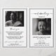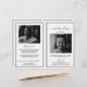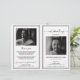 Programme funéraire mettant en vedette sur le devant une photo du défunt, son nom, ses dates, le lieu du mémorial, la date de l'événement, et cadre élégant. A l'intérieur se trouve une nécrologie et un ordre de service ; et au dos une autre photo, une note de remerciement et le deuxième lieu pour après les funérailles. REMARQUE : Ceux-ci viennent comme un morceau plat de papier de qualité, vous aurez besoin de les plier vous-même.