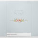 Dieses romantische und elegante Design besticht durch sanfte pastellfarbene Rose und Wildblumen in den Farbtönen Rosa, Weiß, Blassviolett und Gold auf einem hellgrün geprägten Hintergrund mit weißem Mittelteil. Dieses schöne Design beinhaltet auch fließende Textgrafiken in einem eigenen Kalligraphie-Schriftart und Fotovorlagen. Die Hintergrundfarbe ist ebenfalls anpassbar.