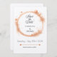 Feiern Sie Ihren großen Tag mit diesem eleganten Hochzeitsdesign mit einem glitzernden, pfirsichfarbenen Kranz, zarten botanischen Stürmen und zeitloser moderner Kalligraphie. Die warme, romantische Farbpalette und der dynamische, wirbelnde Effekt machen diese Karte zu einem idealen Aufenthaltsort für Paare, die eine sanfte, gläserne Ästhetik mit zeitgenössischer Drehung suchen. Ideal für Hochzeiten im Sommer, im Garten oder in den Farben der Blüten, fügt dieses Design Ihrem Fest einen magischen Flair hinzu. Personalisieren Sie mit Ihren Namen, Datum und Veranstaltungsort, um es wirklich zu Ihrem.