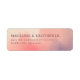 These return address labels feature a soft watercolor background that transitions from light peach to pinkish-orange, creating a warm and inviting feel. The design is minimalist yet sophisticated, with clean lines and uncluttered space, making it perfect for adding a touch of elegance to your mailings. Centered text in bold serif font ensures clarity and readability, while the muted earth tones complement the gentle hues of the backdrop. Ideal for weddings or formal events, these labels offer a personal touch without being overly ornate.