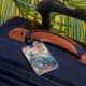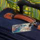 Ein hübscher Pfau und Blume schmücken dieses elegante Gepäckanhänger.