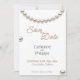 Weiße, elegante Hochzeit Save the Date Einladung mit einer silbernen Perlenhalskette in Aquarell. Es ist sehr einfach, Ihre persönlichen Daten mit Details zu versehen.