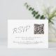 Cette carte d'enceinte RSVP de mariage moderne et minimaliste dispose d'une façade de script élégante. Il joue avec la simplicité d'un design de typographie noir et blanc, ajoutant juste un soupçon de couleur fuzz pêche. Vous pouvez ajouter les informations de votre site Web mariage ainsi qu'un code QR à analyser pour vos invités. Un choix parfait pour les couples qui apprécient l'élégance épurée et moderne. Pour tout besoin de design spécial, n'hésitez pas à contacter directement le designer en envoyant un courriel à choosehappystudio@yahoo.com
