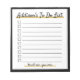 Bleibe produktiv mit diesem personalisierten Notizblock in Schwarz, Gold und Weiß. Das schlichte Design verfügt über zehn Zeilen mit Checkboxen und eignet sich ideal zum Abschreiben und behalt von wichtigen Aufgaben! Personalisieren Sie Ihren Namen oder Textauswahl unter den Zeilen oder verließ Sie ihn auf Wunsch leer. Sie können jedes Element des Designs ändern.