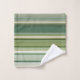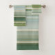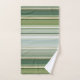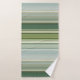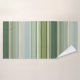 Une belle serviette de bain rayée dans des tons vert pin frais et bleu turquoise pâle avec de minuscules lignes d'or rose.