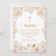 Elegante rosa boho florale Taufe danke Ihnen Karte. Ein modernes Aquarellbild mit rosa bohfarbenem Blumenrahmen mit einem Kreuz. Feiern Sie dieses freudige Ereignis mit unserer personalisierten Danksagung, die den Ton für eine unvergessliche und bedeutsame Ansammlung Set wird.