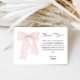 Zeigen Sie Ihre Wertschätzung im Stil mit diesem schönen rosa Bogen danke Ihnen Karte! Mit seinem zarten Organza-Band-Design und seiner eleganten Typografie ist diese Karte perfekt für jedes Geburtstagsfest - ob es sich um einen ersten Geburtstag, Sweet 16 oder einen Meilenstein wie 30, 50 oder darüber hinaus handelt. Personalisieren Sie mit Ihrem Namen oder einer herzlichen Nachricht, um eine durchdachte und stilvolle Weise zu schaffen, um Ihren Gästen zu danken!