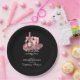 Celebrate a milestone in style with this elegant joint birthday party plate, perfect for both family and formal gatherings. Featuring a black background and a refined graphic of a pink champagne bottle tied with a bow alongside two glasses, this design radiates sophistication and warmth. The heartfelt script message “It's a double celebration” sets the tone for an evening full of appreciation and good company. All party details are neatly presented in a classic serif font, making them easy to read and customize.