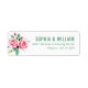 This return address label features a minimalist design with three beautifully illustrated pink roses and green leaves, creating an elegant and sophisticated look. The layout is clean and balanced, with ample white space that highlights the floral elements. Soft pinks and vibrant greens dominate the color palette, evoking a sense of tranquility and grace. The text is presented in a classic serif font, adding to the refined aesthetic, making it perfect for formal occasions or events where a touch of timeless elegance is desired.