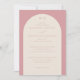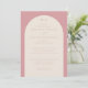 This wedding invitation features an elegant, vertically oriented layout with a soft pink background and a central cream-colored arch framing the text. The design utilizes classic serif fonts in varying sizes to create a harmonious flow, emphasizing key details like the couple's names and event date. Its minimalist approach focuses on typography and simple geometric shapes, conveying a mood of refinement and celebration suitable for a formal occasion. The muted color palette enhances the sophisticated aesthetic, making it perfect for couples seeking a timeless and graceful invitation design.