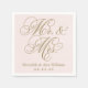 Hochzeitsnapkins spielen "Mr. & Mrs." in einem antiken Schriftart mit Goldkalligraphie-Schrift mit individuellem Monogramm-Design, das mit dem verheirateten Namen der Braut und des Bräutigams und dem Hochzeitstermin personalisiert werden kann. Pastellrosa und antike goldene Farbgebung.