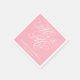 Hochzeitsnapkins zeigen "Mr. & Mrs." in einem Schriftart mit weißer Kalligraphie, mit individueller Monogrammgestaltung, die mit dem verheirateten Namen und dem Hochzeitsdatum der Braut und des Bräutigams personalisiert werden kann. Hellrosa und weiße Farbe.