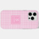 The Modern Pink Plaid iPhone Case from the Clear Name Accent Collection is the perfect blend of style and functionality. This trendy case not only boasts a chic pink plaid design that will elevate your phone's look, but it also provides reliable protection against daily wear and tear. Crafted with high-quality materials, this case ensures a secure fit and easy access to all ports and buttons, making your phone usage smooth and hassle-free. With its clear name accent, you can personalize your device and add a touch of uniqueness to your everyday carry. Whether you're looking to make a fashion statement or simply keep your phone safe in style, the Modern Pink Plaid iPhone Case is a must-have accessory for any trendsetter.