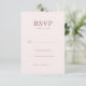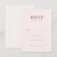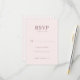 This wedding RSVP card features a minimalist design with a soft, pastel pink background that exudes elegance and simplicity. The layout is clean and modern, utilizing ample negative space to highlight the essential information. Bold serif typography for "RSVP" contrasts with smaller sans-serif fonts for clarity, while customizable fields allow for personalization. Perfect for formal events, this card combines understated style with functional elements, creating an inviting and polished invitation experience.