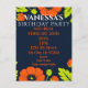 Elegant poppies on a black background. Birthday invitation for any age.