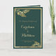 Elégante forêt moderne vert et feuille d'or invitation Programme de mariage. Cette faire-part de mariage glamour chic est parfaite pour toute fille glamour classe et sophistiquée. Ce design est idéal pour un événement de fête branché et élégant. Concevez avec votre propre message et informations. Tous les dessins sont imprimés.