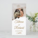 Ce programme de mariage élégant offre un espace pour une photographie de vous et de votre futur conjoint, et un texte dans un script or classique et sophistiqué.